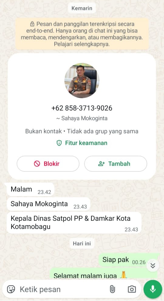 Berita-BMR.Com | KOTAMOBAGU — Satuan Polisi Pamong Praja (Satpol PP) Kota Kotamobagu mengeluarkan imbauan resmi kepada masyarakat terkait maraknya akun WhatsApp dan media sosial palsu yang mengatasnamakan pejabat maupun institusi Satpol PP.