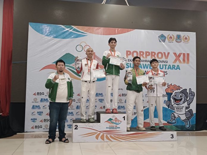 Berita-BMR.Com | Bolmong — Arena Hall Kodam 13 Merdeka mendadak berubah menjadi panggung drama olahraga tingkat tinggi. Sorak penonton menggema, napas para pendukung tertahan, penuh ketegangan terasa hingga ke ujung tribun saat Javier Samuel Harimu, taekwondoin kebanggaan Kabupaten Bolaang Mongondow (Bolmong), menuliskan kisah heroiknya di Porprov XII Sulawesi Utara.