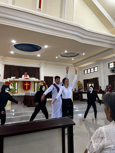 Acara dirangkaikan dengan pentas seni rohani yang memukau — mulai dari drama, skit, hingga tarian rohani yang menggugah hati jemaat ditampilkan anak-abak SMA Kristen Kotamobagu.