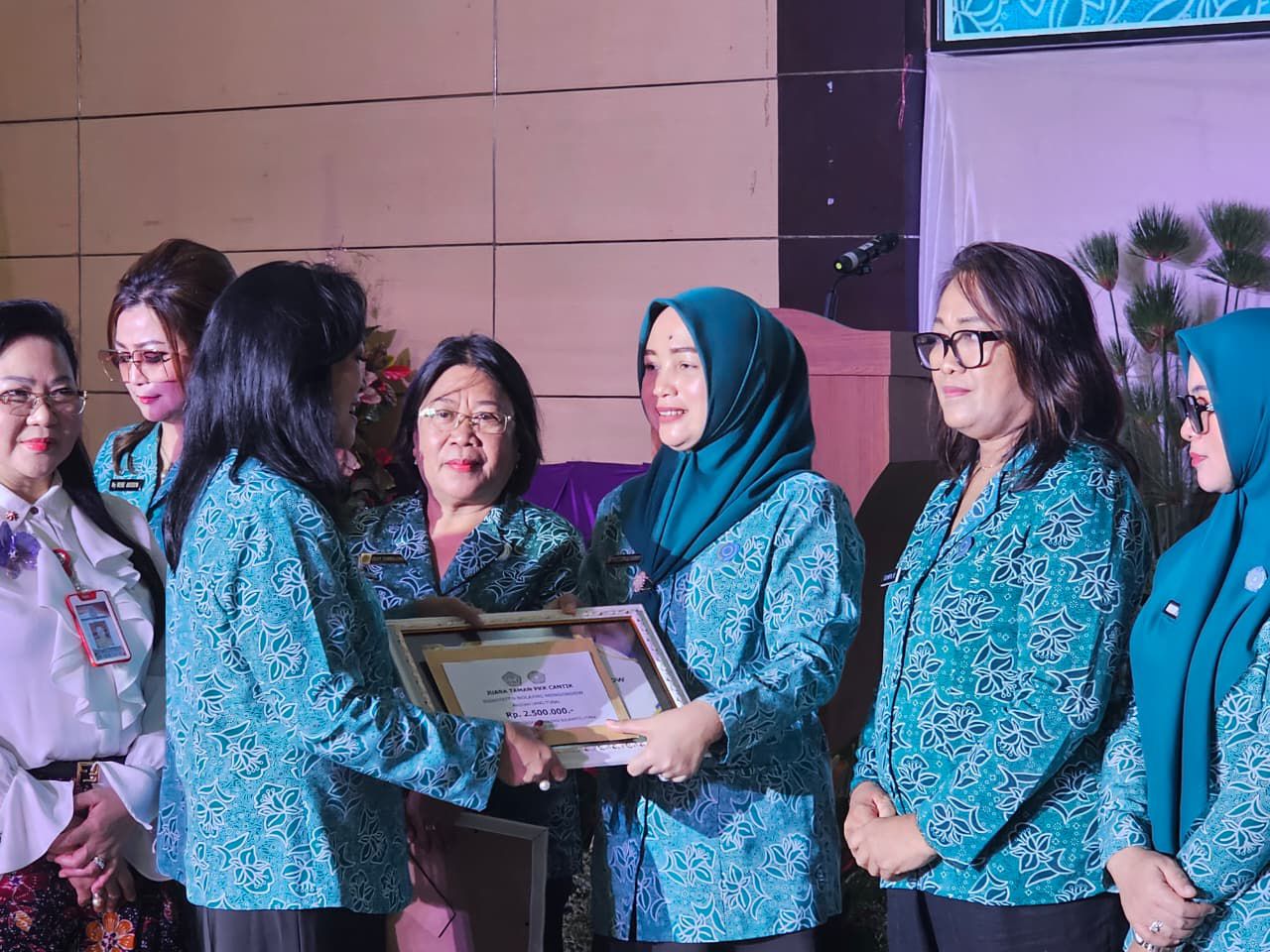Ketua TP-PKK Bolmong, Ny. Kalsum Alhabsyi, tak mampu menyembunyikan rasa bangganya usai menerima penghargaan tersebut.