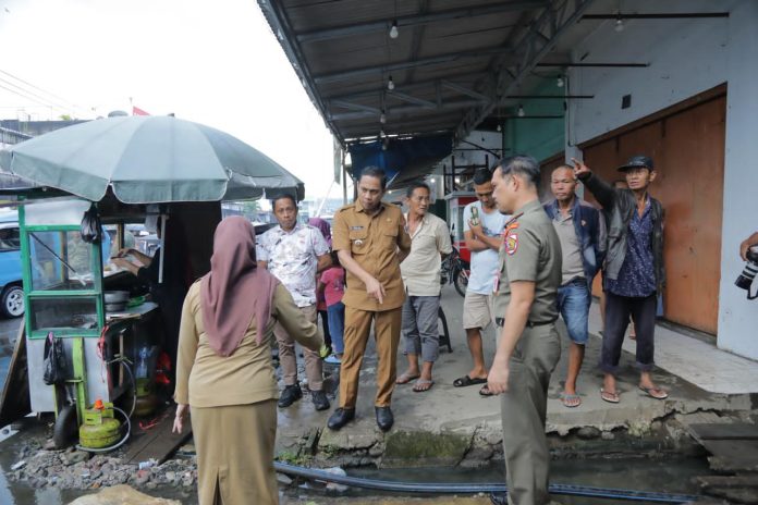 Dengan langkah tenang namun tegas, Wali Kota Weny menelusuri sisi jalan sambil berdialog dengan warga dan pemilik toko di sepanjang lokasi. Di bawah terik matahari, ia memastikan sendiri sumber persoalan yang selama ini dikeluhkan masyarakat.